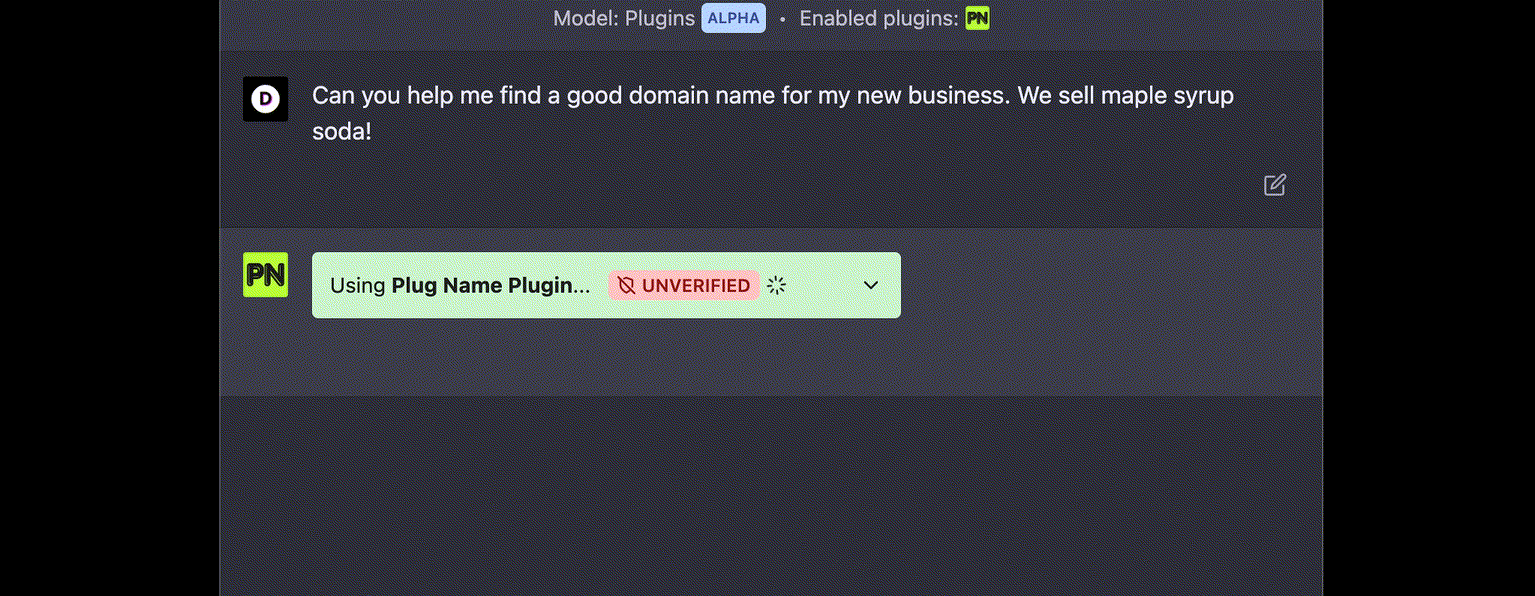 PlugName is a ChatGPT plugin that generates great domain names and checks if they are available.